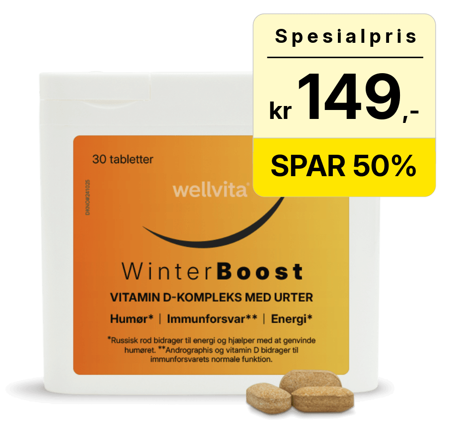 Når solen står lavt og dagene blir kortere, klarer ikke kroppen lenger å danne nok D-vitamin. Derfor anbefaler norske helsemyndigheter at man tar et tilskudd av D-vitamin i vinterhalvåret. Med ingrediensene i WinterBoost får du samtidig støtte til immunforsvaret, mer energi og hjelp til å bevare et godt humør gjennom de mørke månedene.